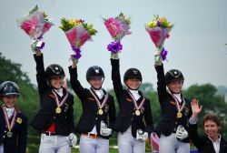 Millstreet/IRL - Mit einem Paukenschlag haben die Pony-Europameisterschaften im irischen Millstreet für die deutschen Reiter begonnen. Zum 29. Mal in der Geschichte hat ein Dressur-Team von Bundestrainerin Cornelia Endres den Titel gewonnen. Nur acht Mal verpassten die deutschen Ponydressurreiter seit 1978 Gold, davon ausgerechnet zwei Mal in Millstreet (1981 und 1989). Jetzt, 25 Jahre später, hat es auch in Irland geklappt.